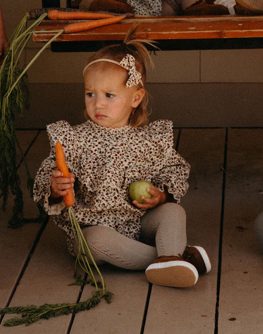 The Gloria Bubble Romper is a true statement piece for fall, designed with timeless elegance in mind. Its vintage-inspired floral print and ruffle detail across the bodice make it the perfect outfit for special occasions, family gatherings, and outings.